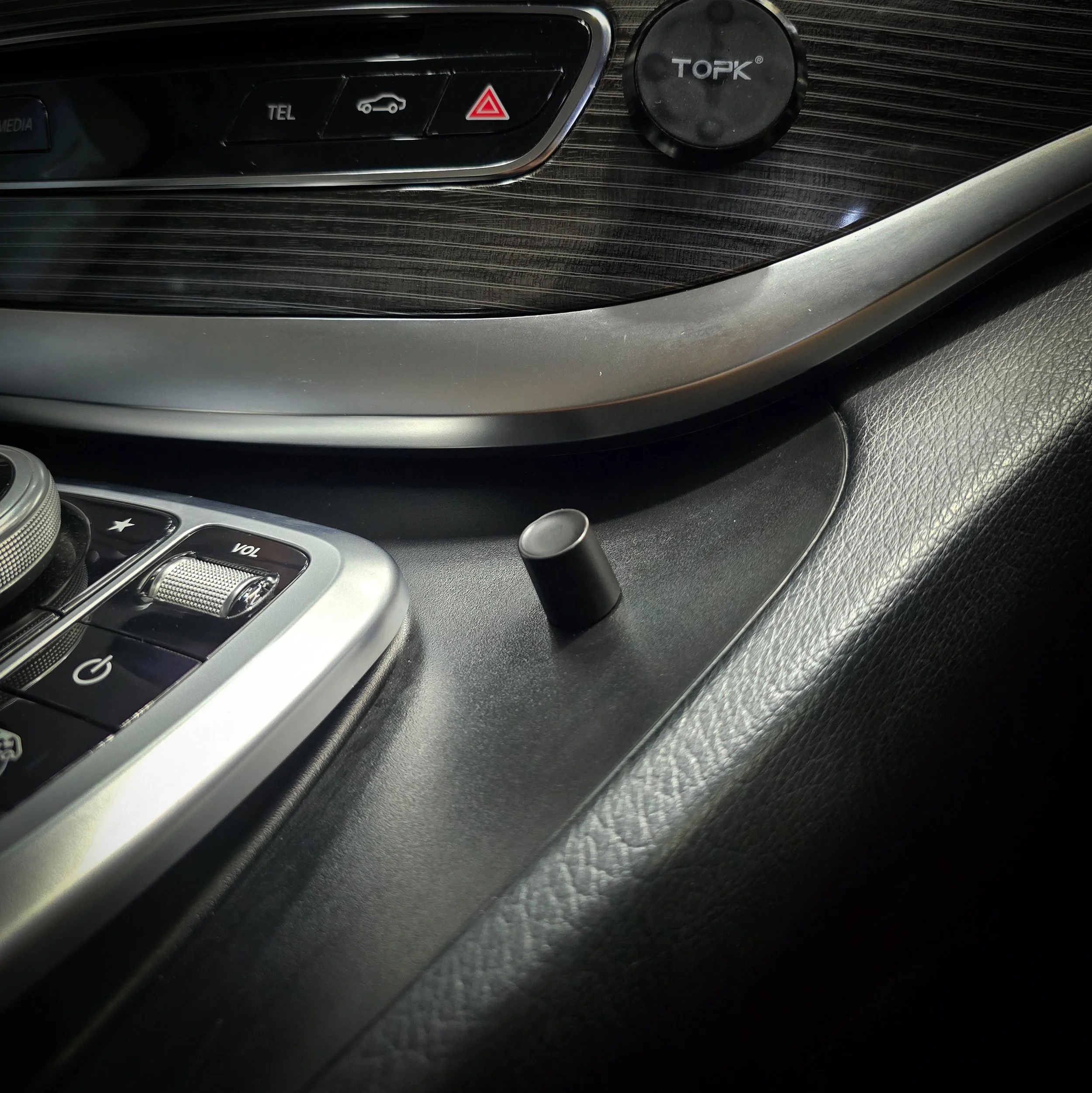 A flush-mounted bass control was integrated into the centre console — no knob sitting on top of the dash, no remote dangling from a wire. Just a discreet control that belongs in the car.
