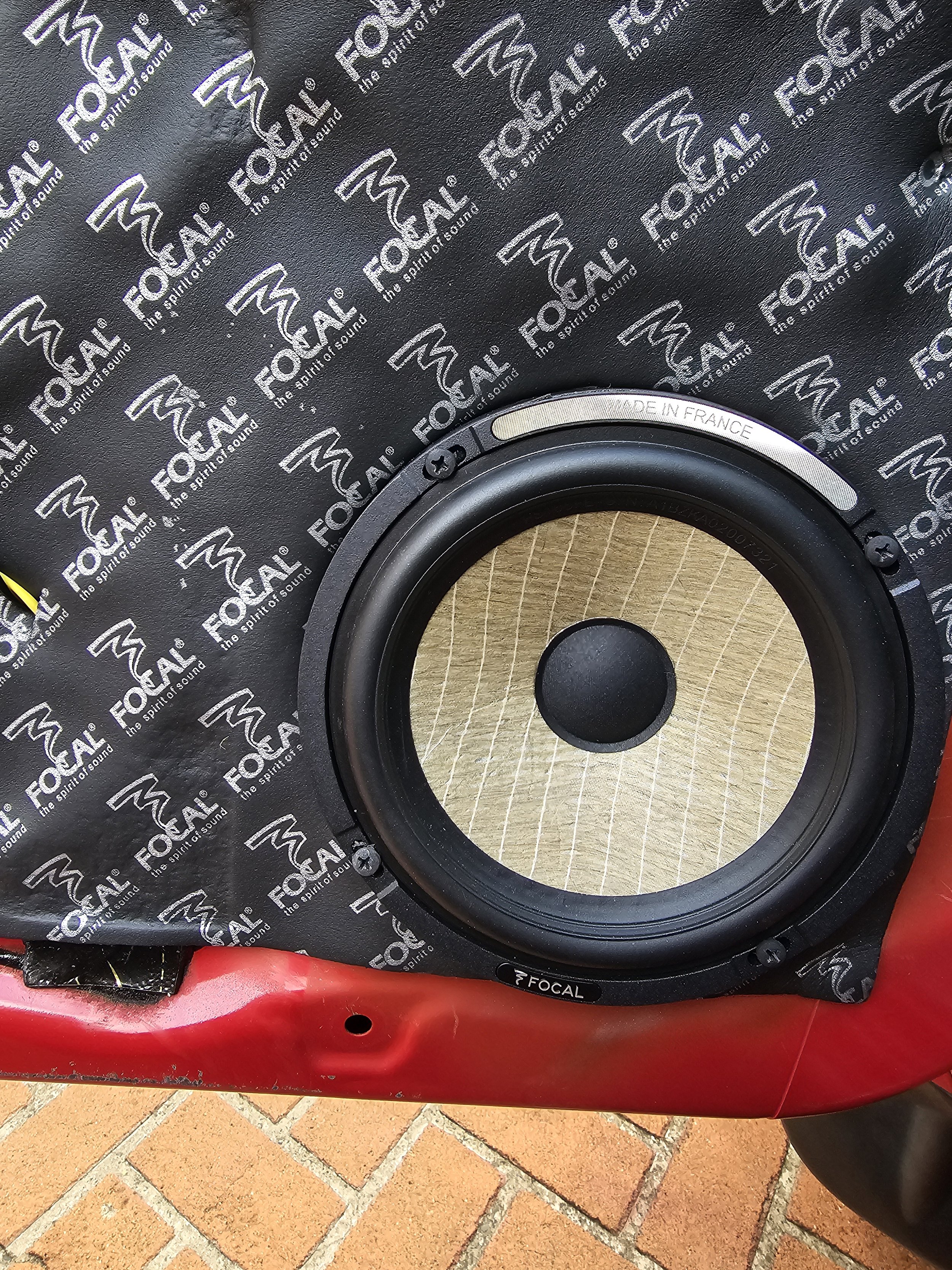 Bass comes from a JL Audio 8-inch ported enclosure fitted behind the rear seat — compact enough for a dual-cab, tuned to hand off cleanly from the Focal woofers in the doors.